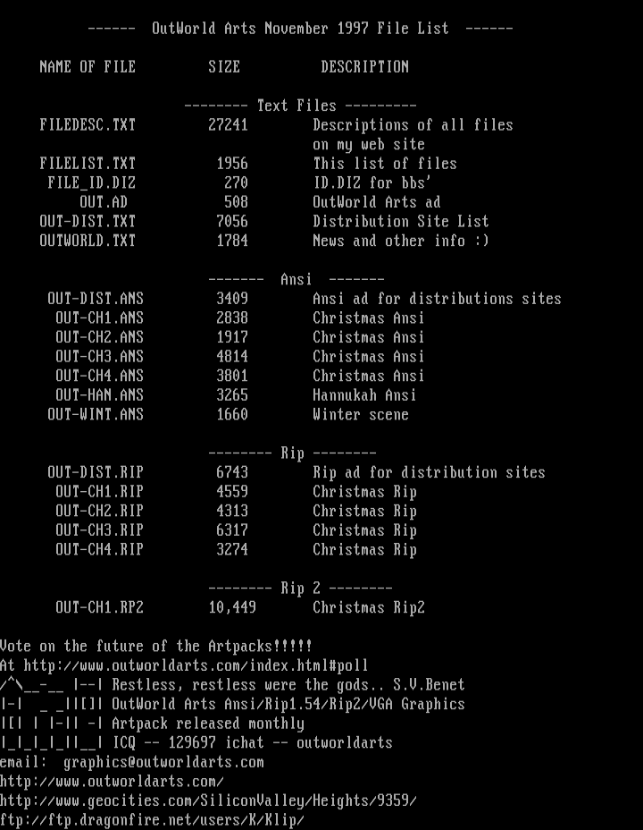 - OutWorld Arts Ansi/Rip1.54/Rip2/VGA Graphics