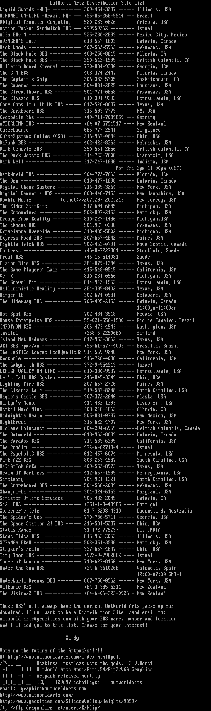 - OutWorld Arts Ansi/Rip1.54/Rip2/VGA Graphics
