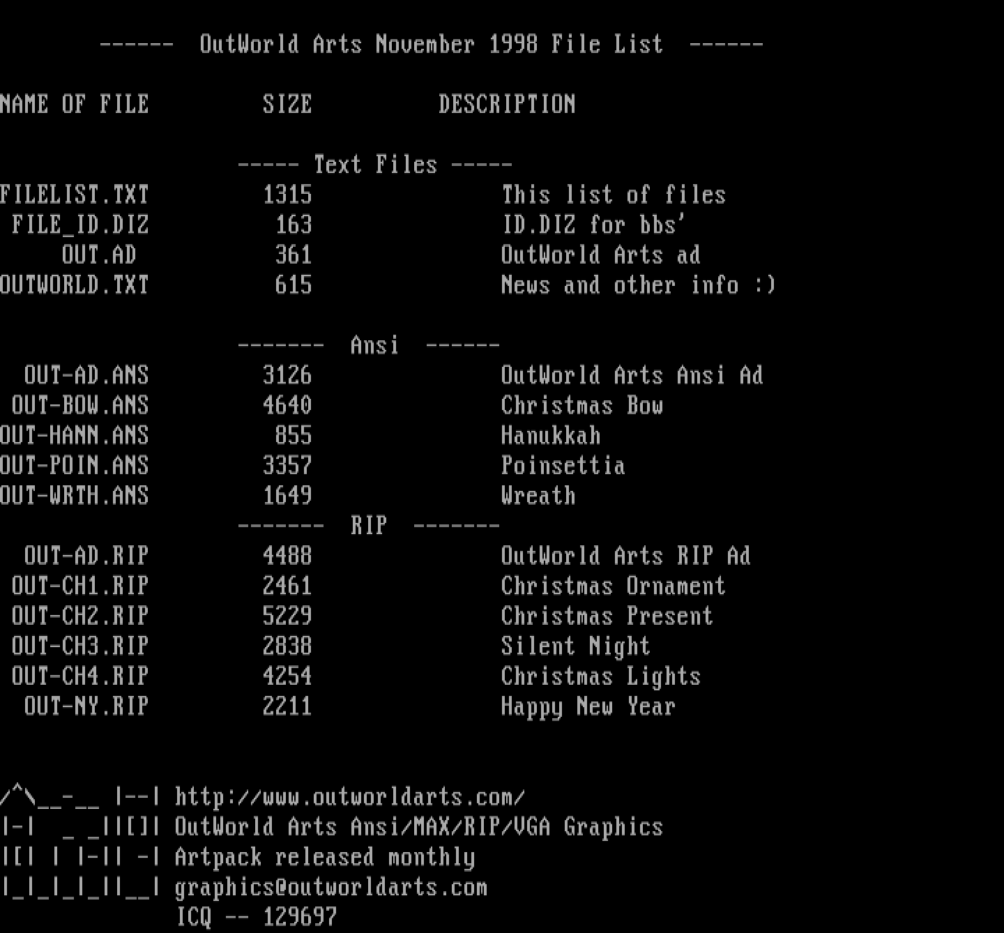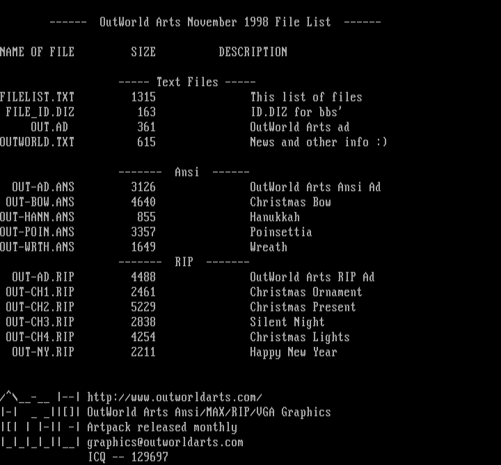 - OutWorld Arts Ansi/MAX/RIP/VGA Graphics