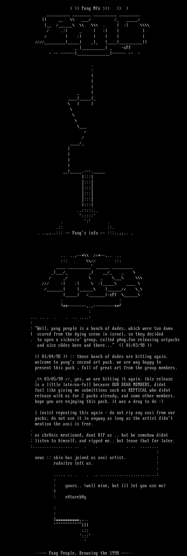 . to open a sickenin group, called pAng,foo releasing artpacks