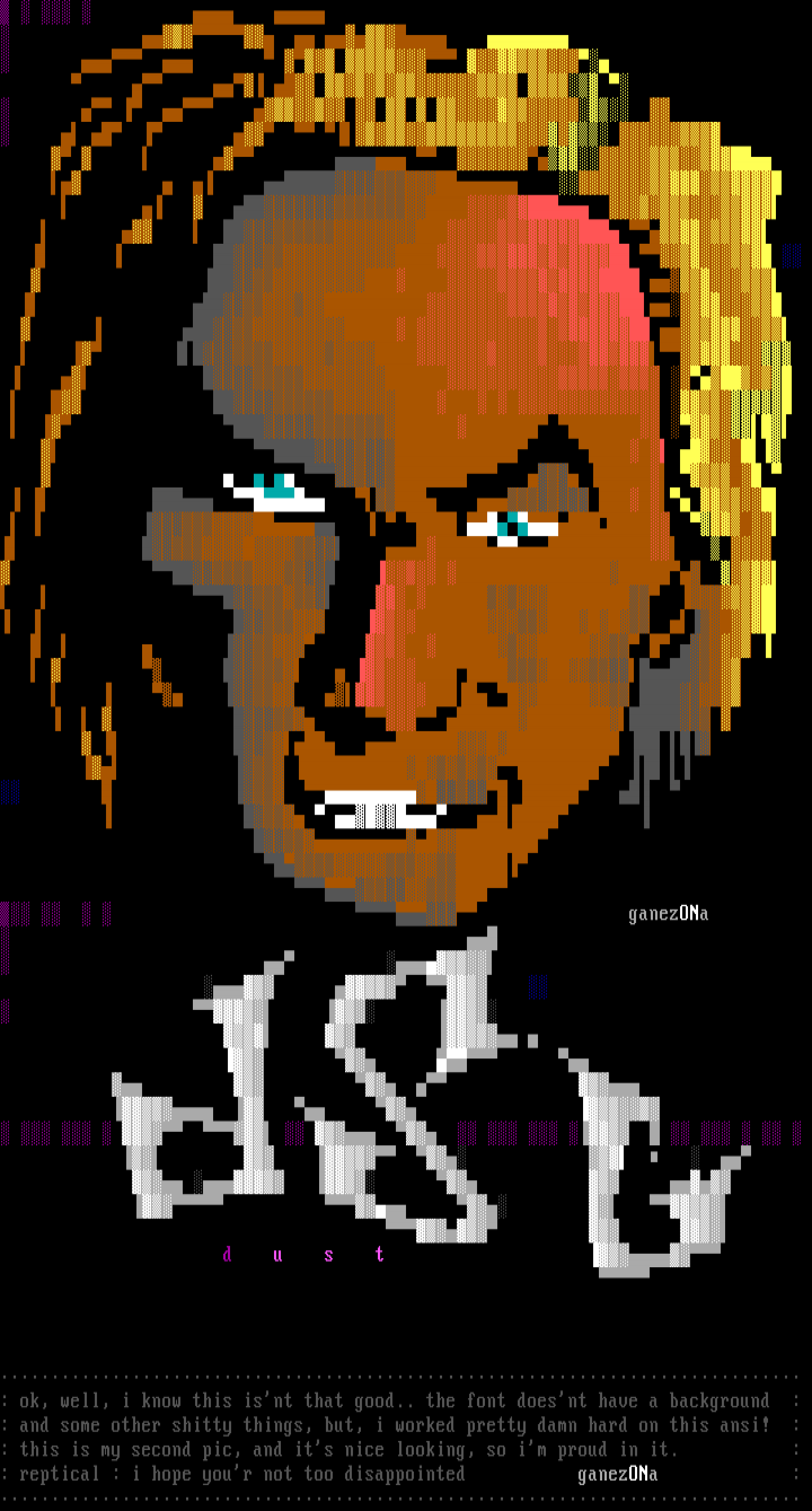: ok, well, i know this isnt that good.. the font doesnt have a background : : and some other shitty things, but, i worked pretty damn hard on this ansi! :