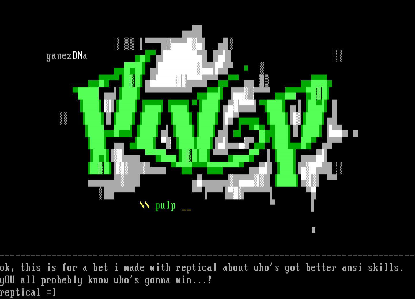 --------------------------------------------------------------------------------ok, this is for a bet i made with reptical about whos got better ansi skills.