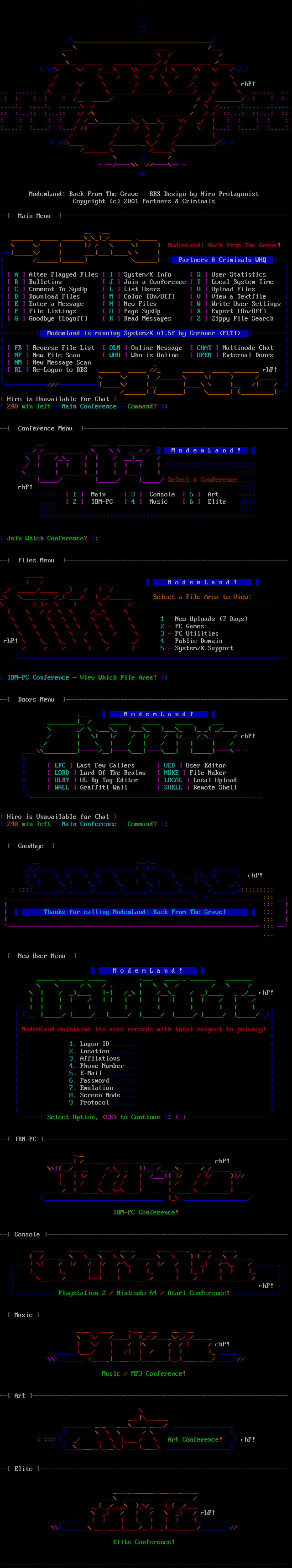 +--------- Modemland is running System/X v1.5f by Coroner FLT! ---------+