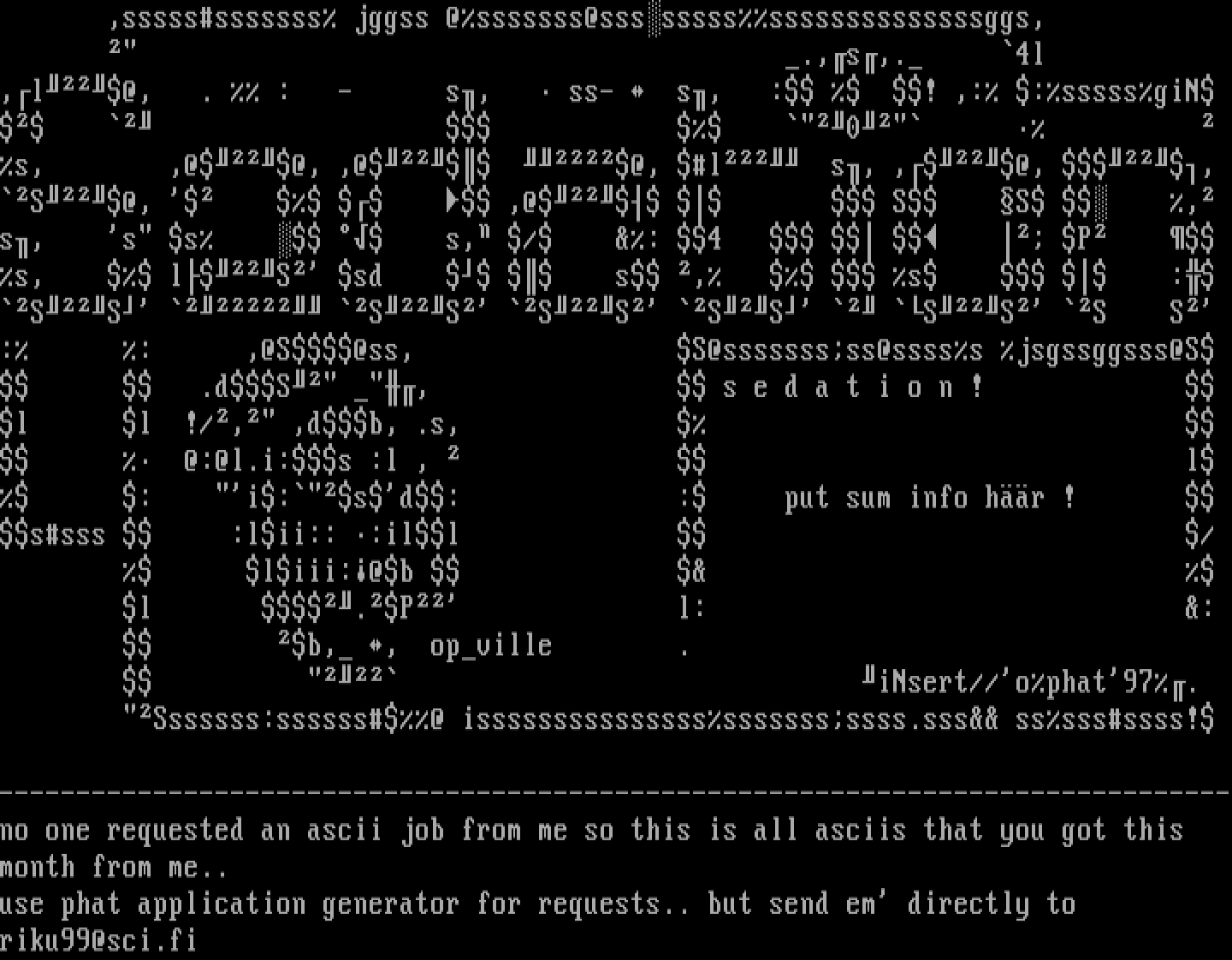 --------------------------------------------------------------------------------no one requested an ascii job from me so this is all asciis that you got this