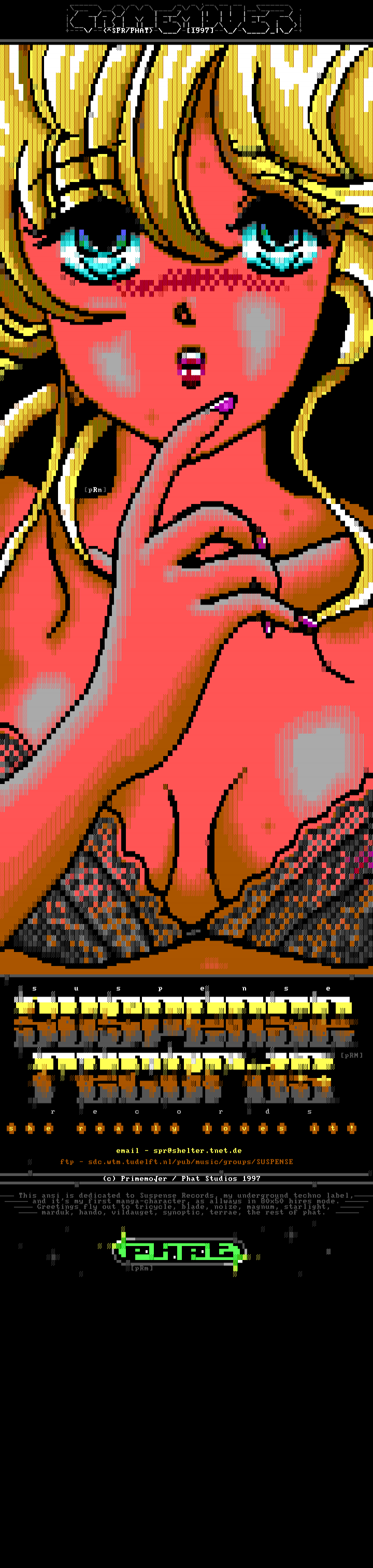 This ansi is dedicated to Suspense Records, my underground techno label, and its my first manga-character, as allways in 80x50 hires mode.