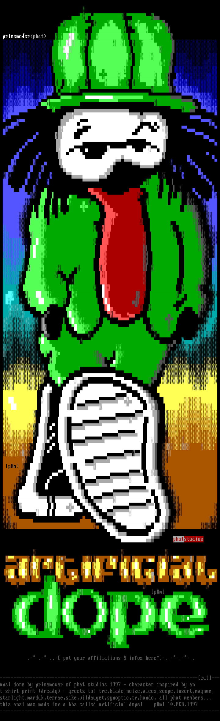 this ansi was made for a bbs called artificial dope! pRm! 10.FEB.1997