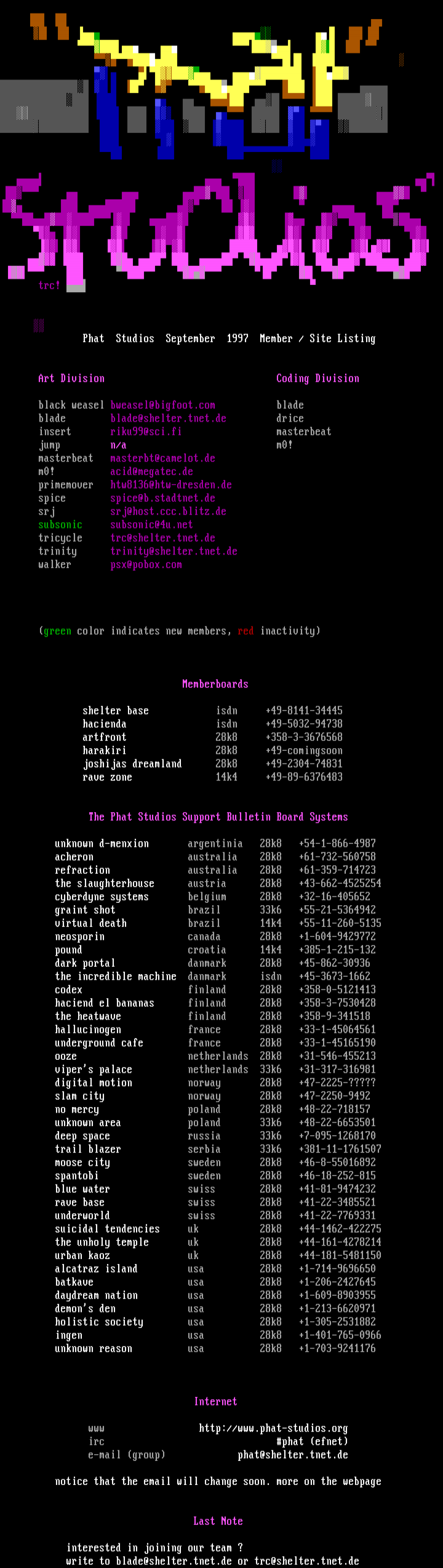 write to blade@shelter.tnet.de or trc@shelter.tnet.de
