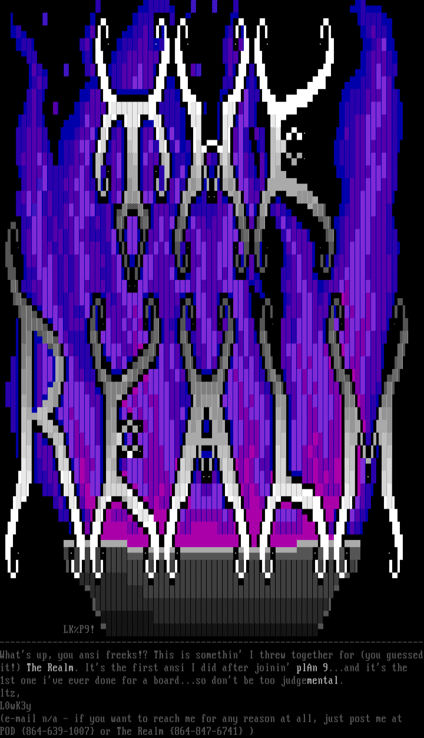 --------------------------------------------------------------------------------Whats up, you ansi freeks!? This is somethin I threw together for you guessedit! The Realm. Its the first ansi I did after joinin plAn 9...and its the