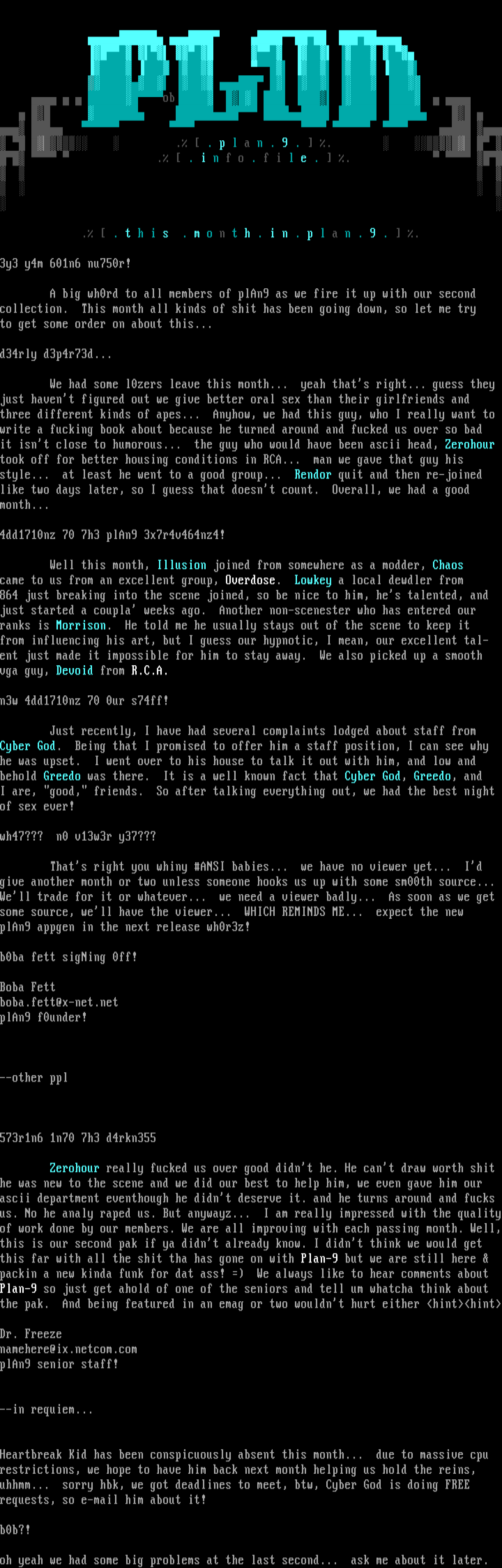 A big wh0rd to all members of plAn9 as we fire it up with our second