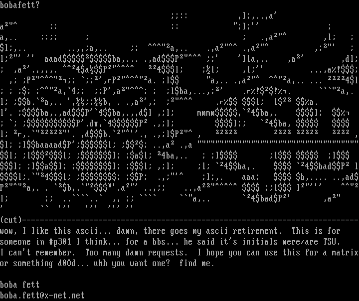 cut---------------------------------------------------------------------------wow, I like this ascii... damn, there goes my ascii retirement. This is for