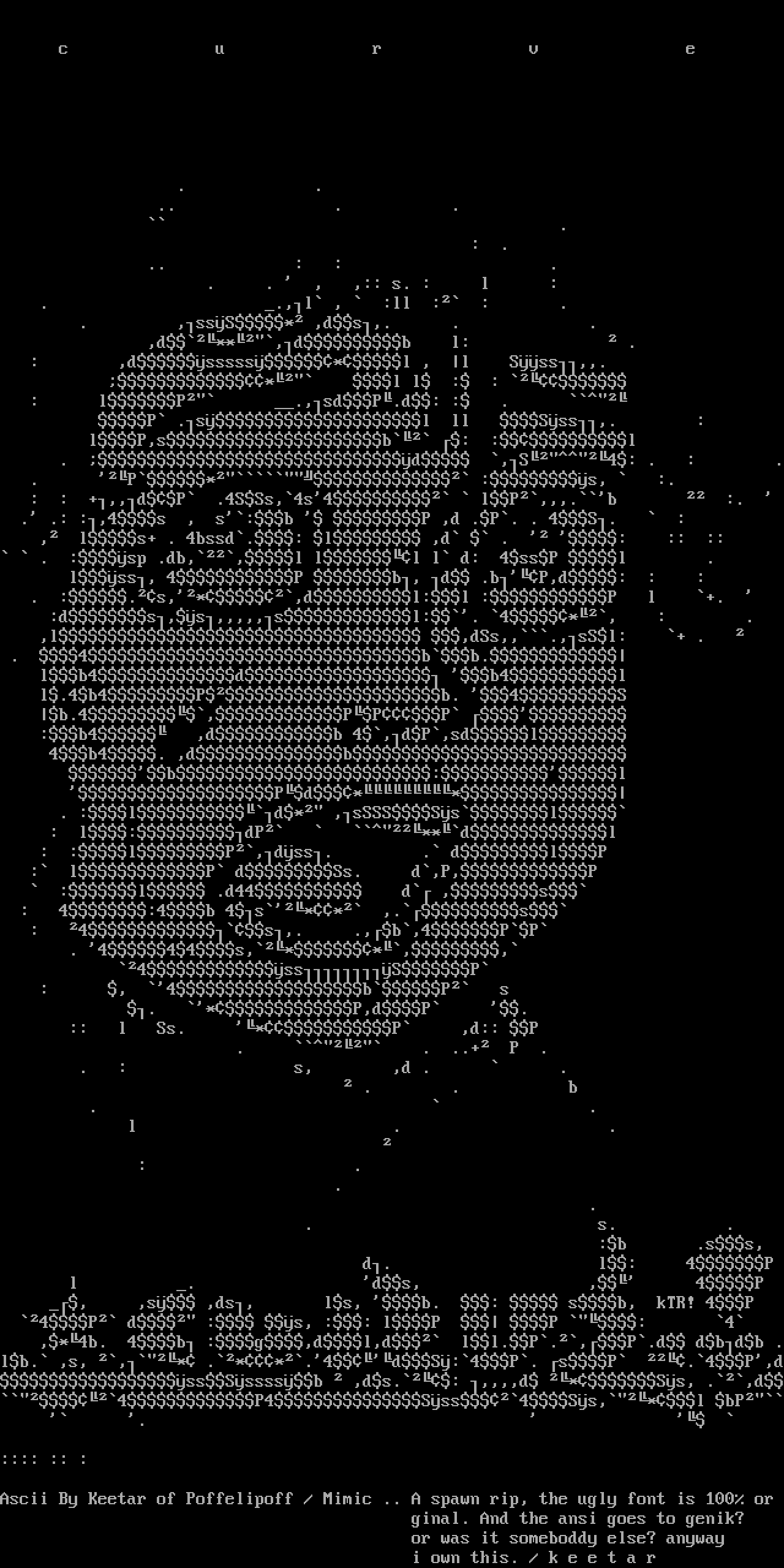 Ascii By Keetar of Poffelipoff / Mimic .. A spawn rip, the ugly font is 100 or