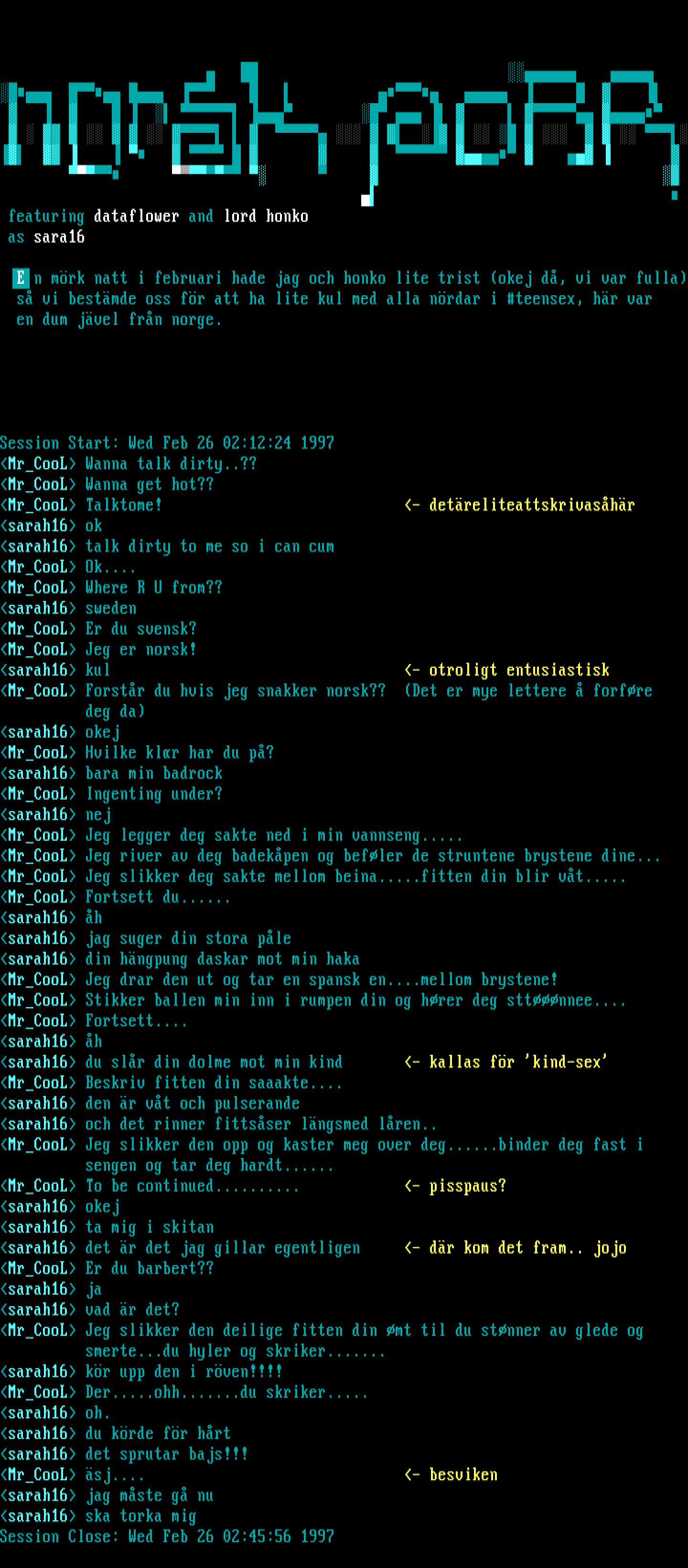 En mrk natt i februari hade jag och honko lite trist okej d, vi var fulla s vi bestmde oss fr att ha lite kul med alla nrdar i teensex, hr var