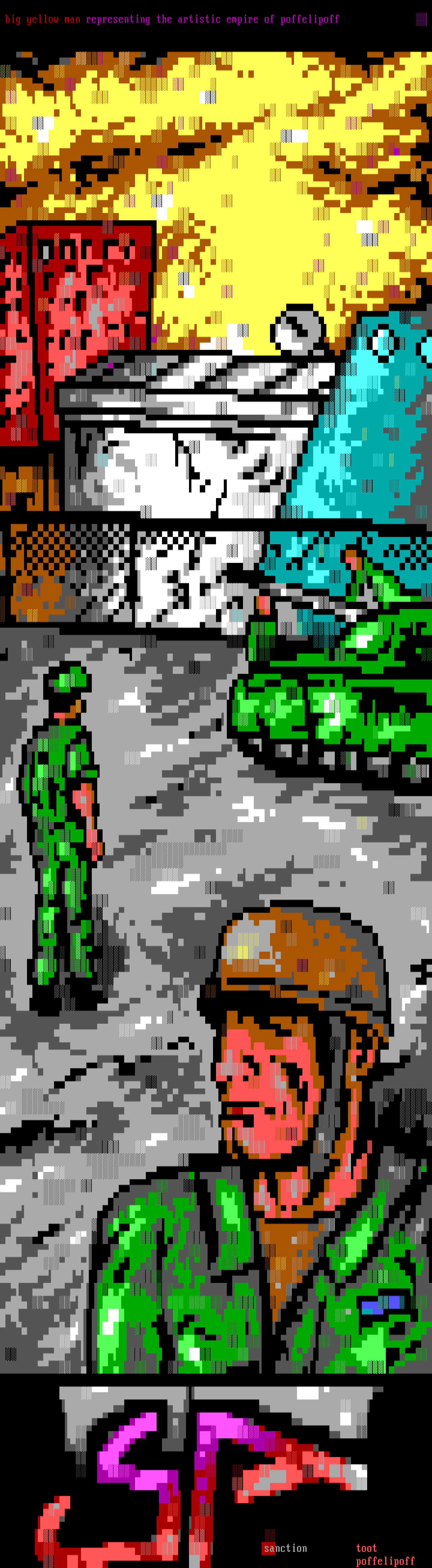 big yellow man representing the artistic empire of poffelipoff - hi there!