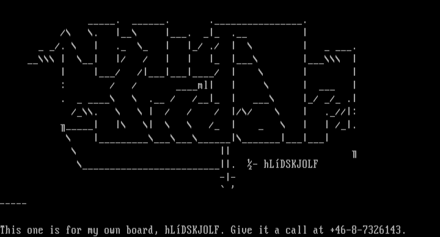 This one is for my own board, hLDSKJOLF. Give it a call at +46-8-7326143.