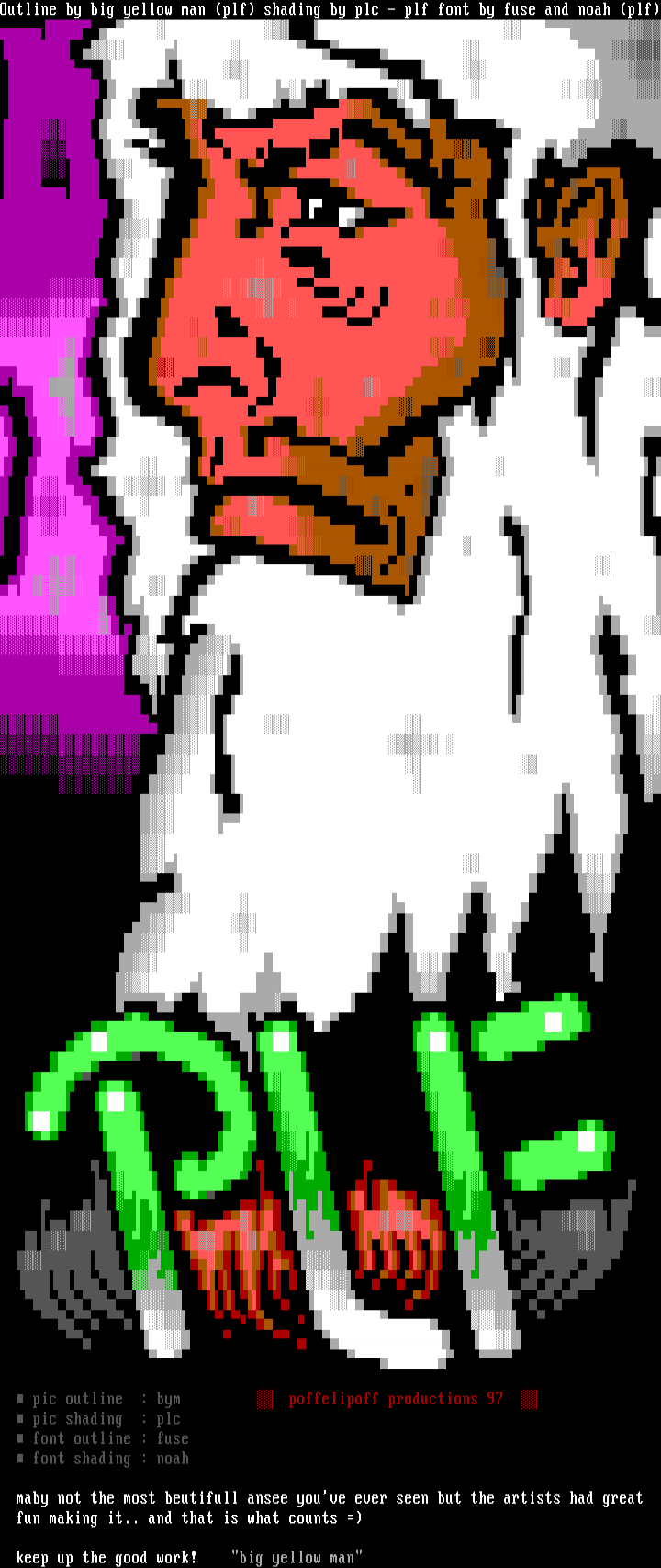 Outline by big yellow man plf shading by plc - plf font by fuse and noah plf