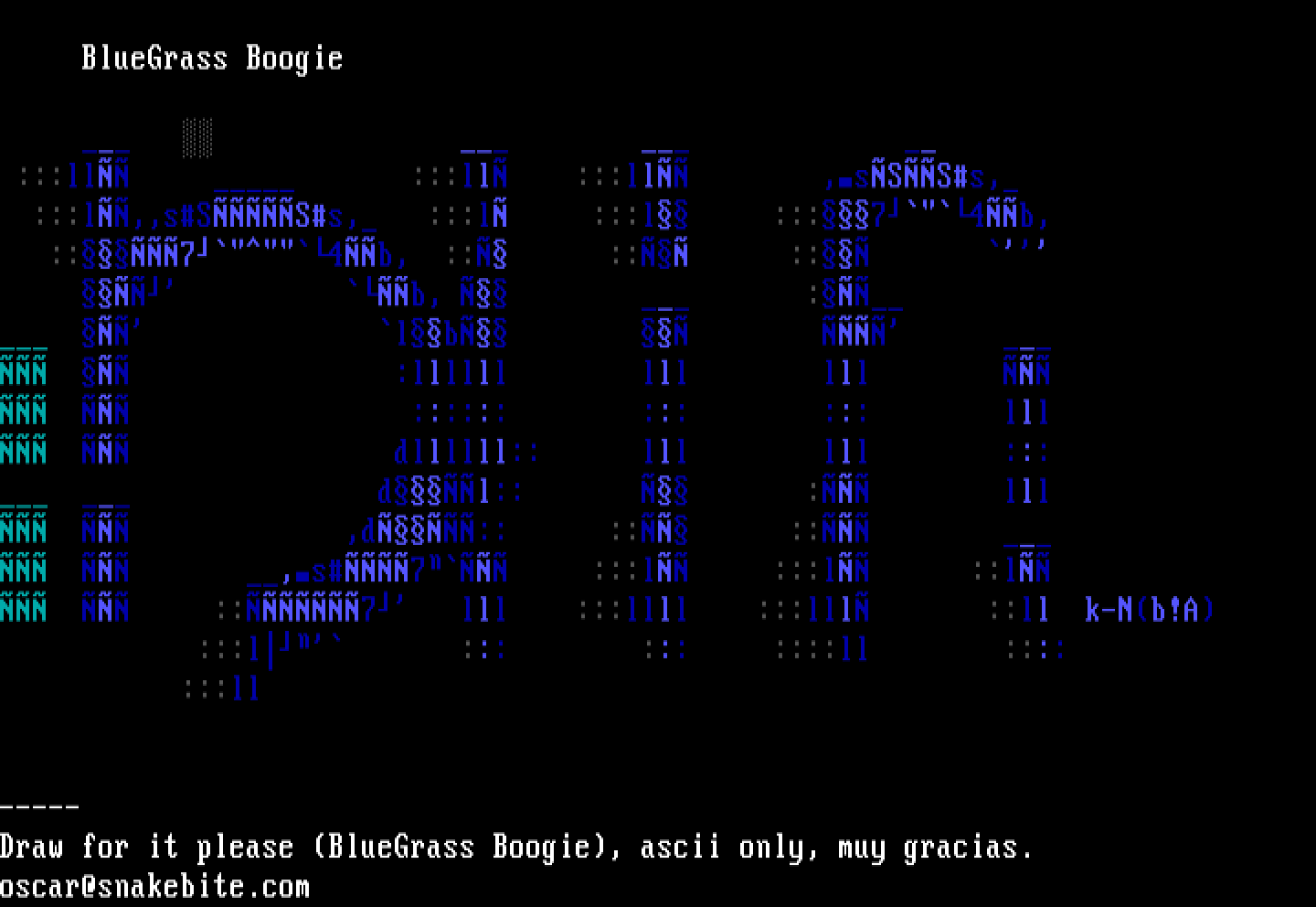 Draw for it please BlueGrass Boogie, ascii only, muy gracias.