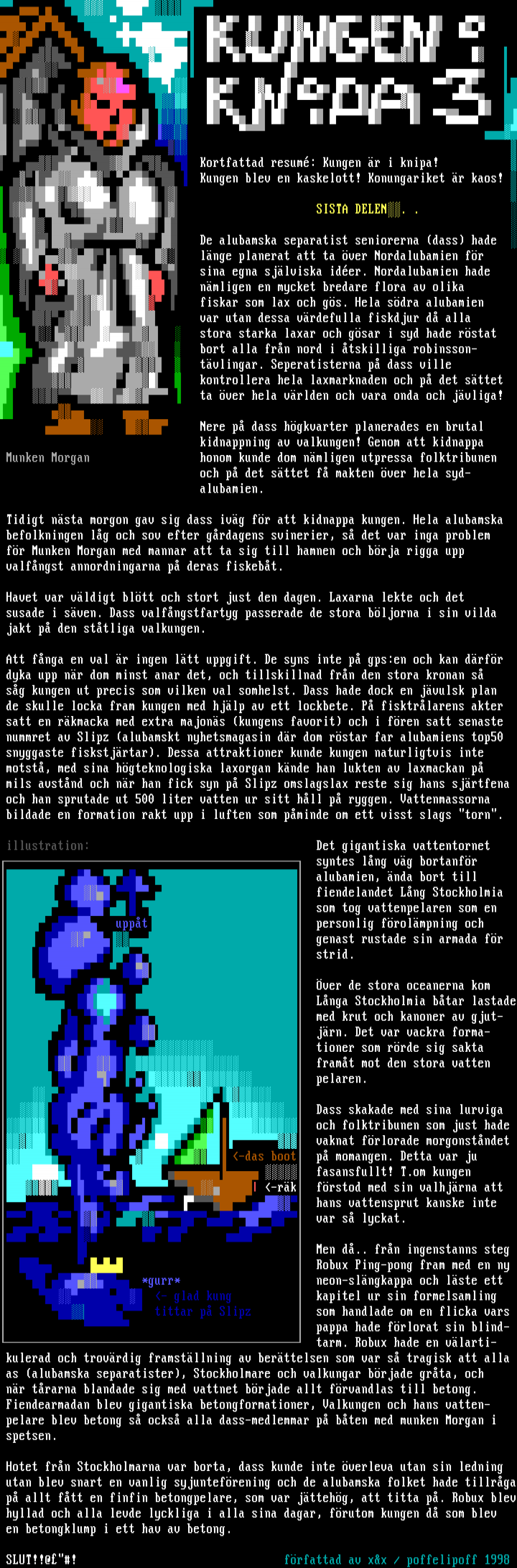 Kortfattad resum: Kungen r i knipa! Kungen blev en kaskelott! Konungariket r kaos! SISTA DELEN. . De alubamska separatist seniorerna dass hade lnge planerat att ta ver Nordalubamien fr