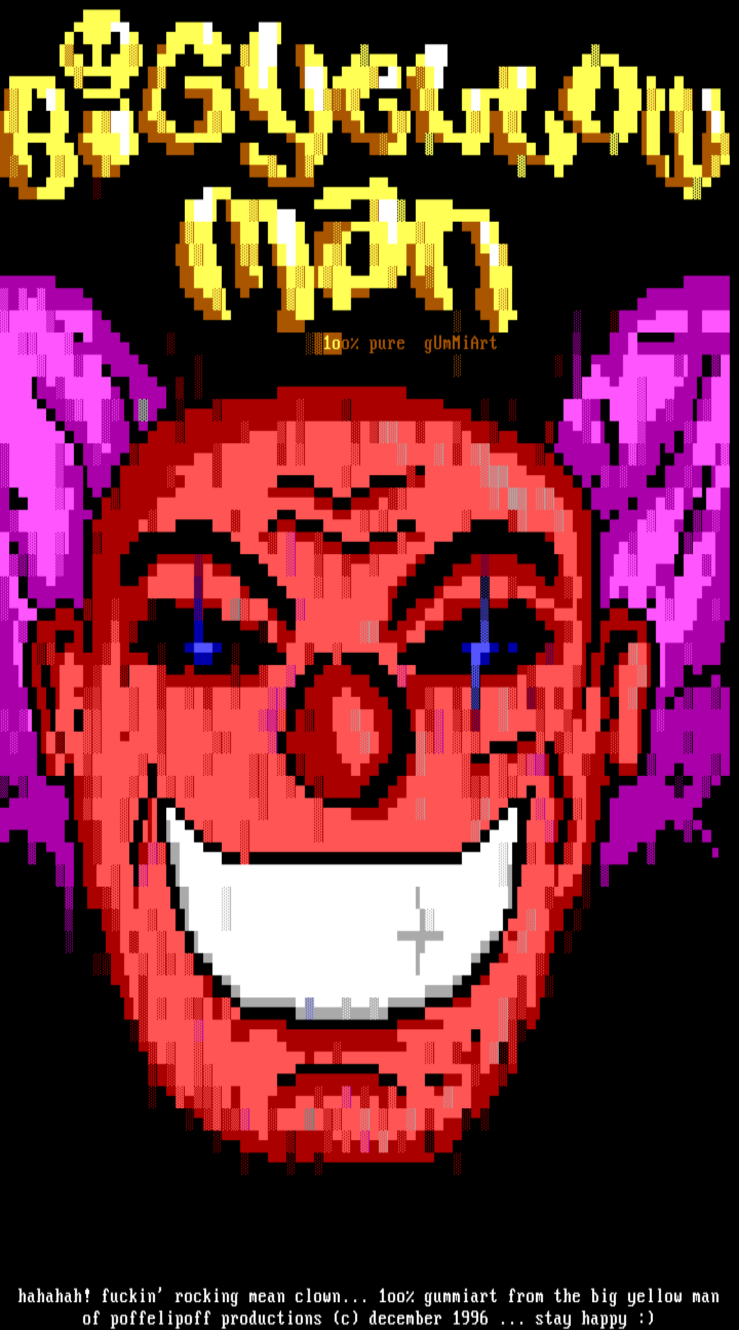 hahahah! fuckin rocking mean clown... 1oo gummiart from the big yellow man