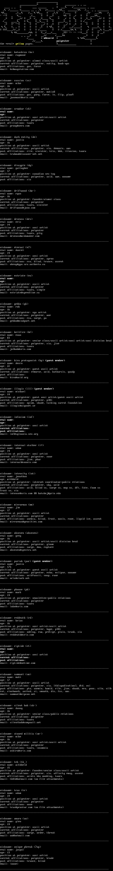 butachico (1) crowbar (1) driftwood (1) eternal (1) extriate (3) fury (2) gehko (6) hellfire (6) hiro protagonist (1) illogic (2) infusion (2) infusium (2) internal stalker (1) megga hertz (3) mirrorman (1) ohseven (1) sammael (1) sevenup (3) stoned militia (2) tek (5) umaro (1)