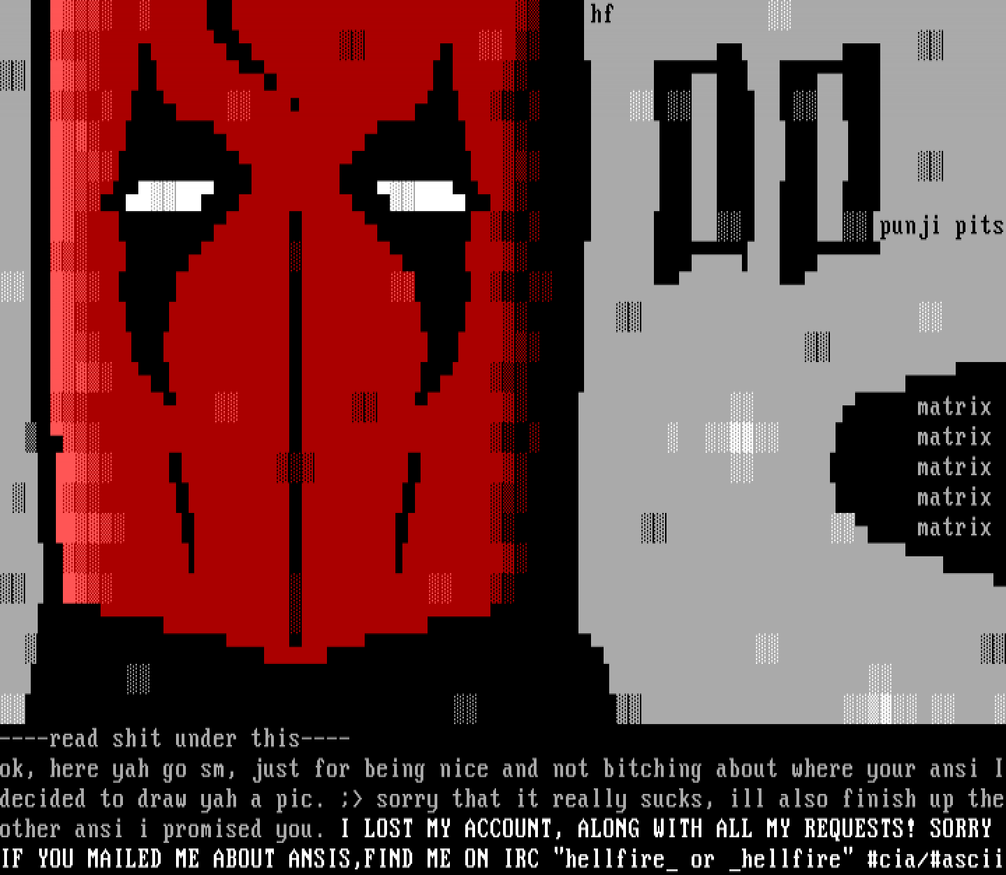 ok, here yah go sm, just for being nice and not bitching about where your ansi Idecided to draw yah a pic. sorry that it really sucks, ill also finish up theother ansi i promised you. I LOST MY ACCOUNT, ALONG WITH ALL MY REQUESTS! SORRY