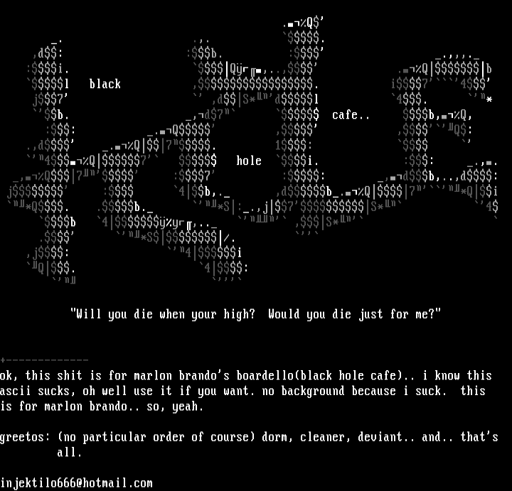 ok, this shit is for marlon brandos boardelloblack hole cafe.. i know this