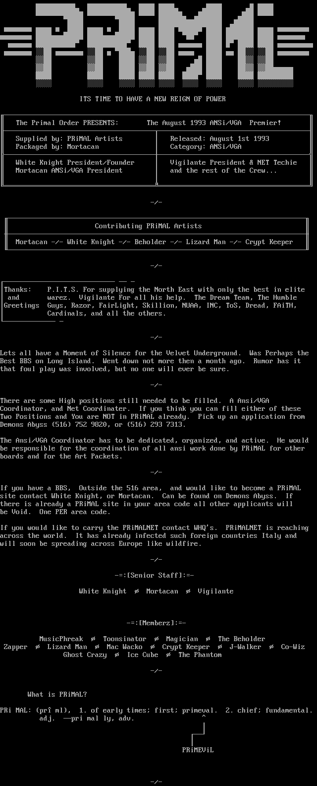 The Primal Order PRESENTS: The August 1993 ANSi/VGA Premier!