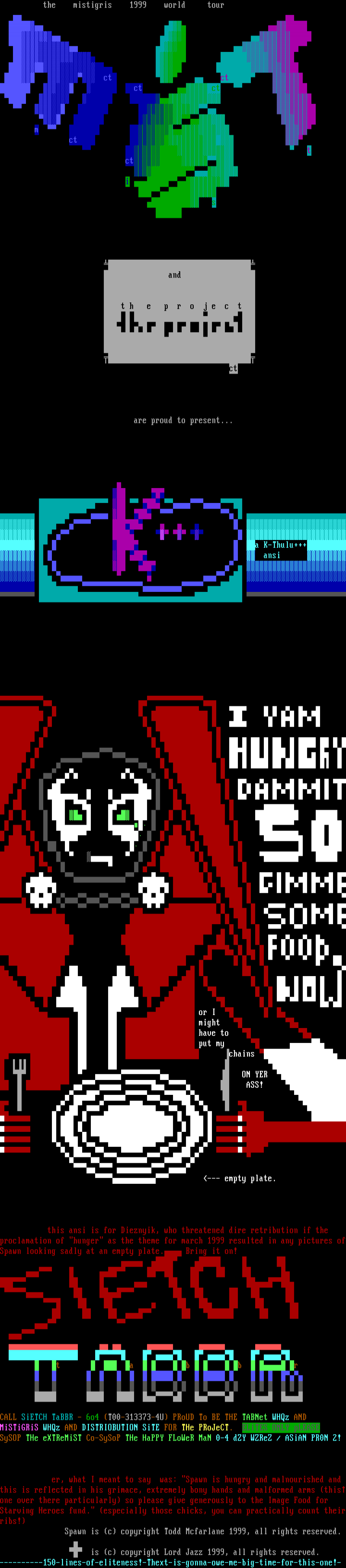 proclamation of hunger as the theme for march 1999 resulted in any pictures ofSpawn looking sadly at an empty plate. Bring it on!