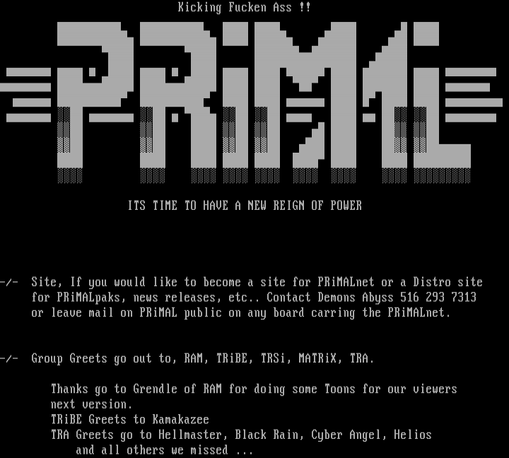 or leave mail on PRiMAL public on any board carring the PRiMALnet.