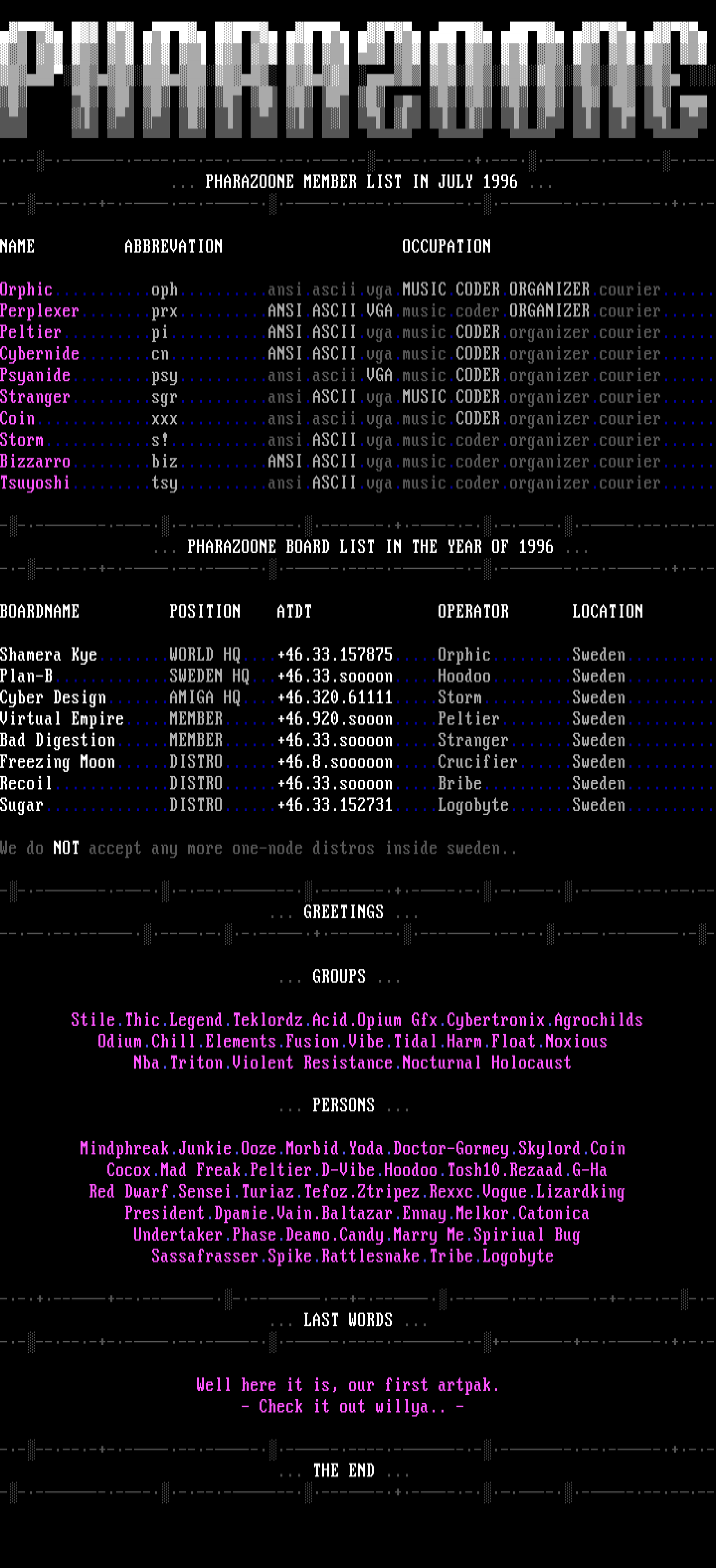 --------------------+-------------- ... PHARAZOONE BOARD LIST IN THE YEAR OF 1996 ...