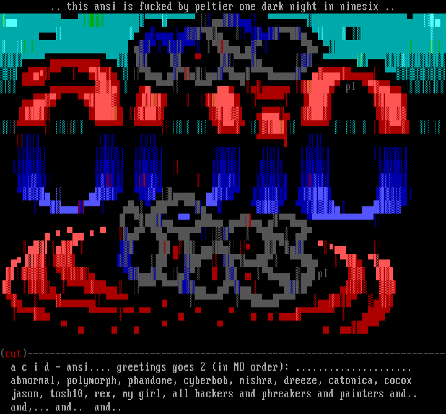 .. this ansi is fucked by peltier one dark night in ninesix ..