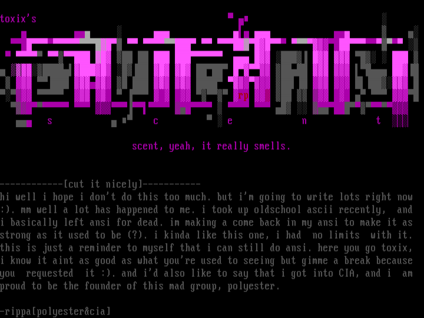 this is just a reminder to myself that i can still do ansi. here you go toxix,