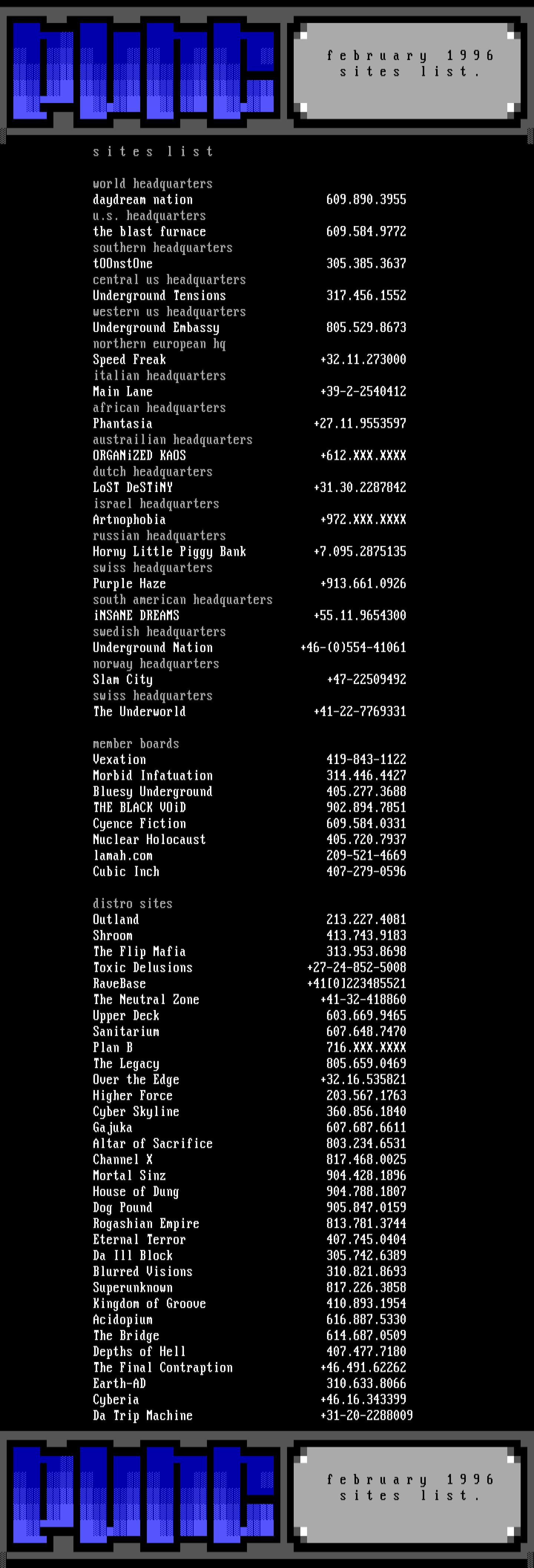 - february site list
