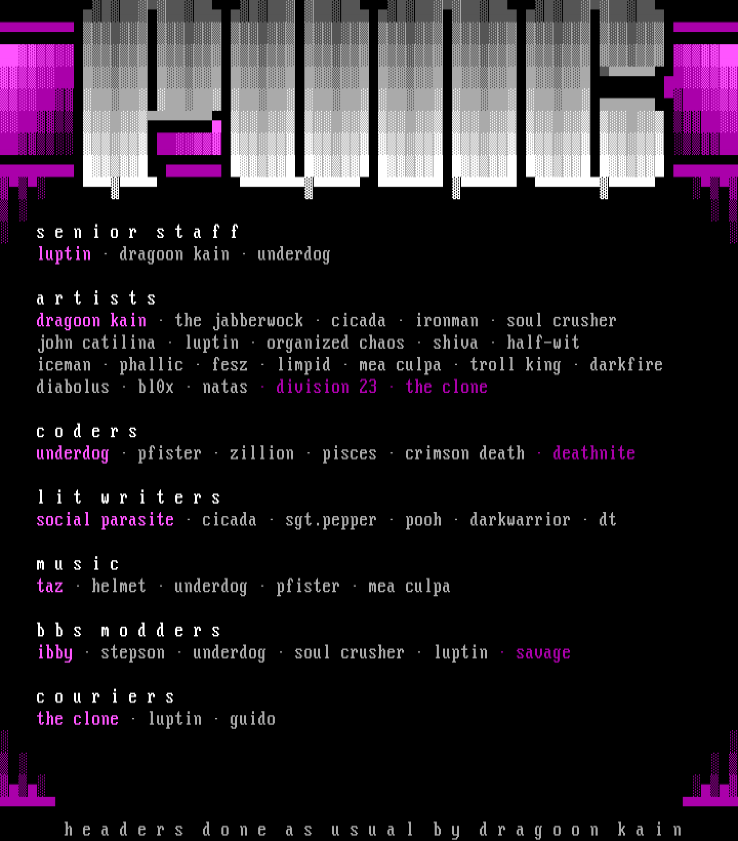 s e n i o r s t a f f luptin dragoon kain underdog