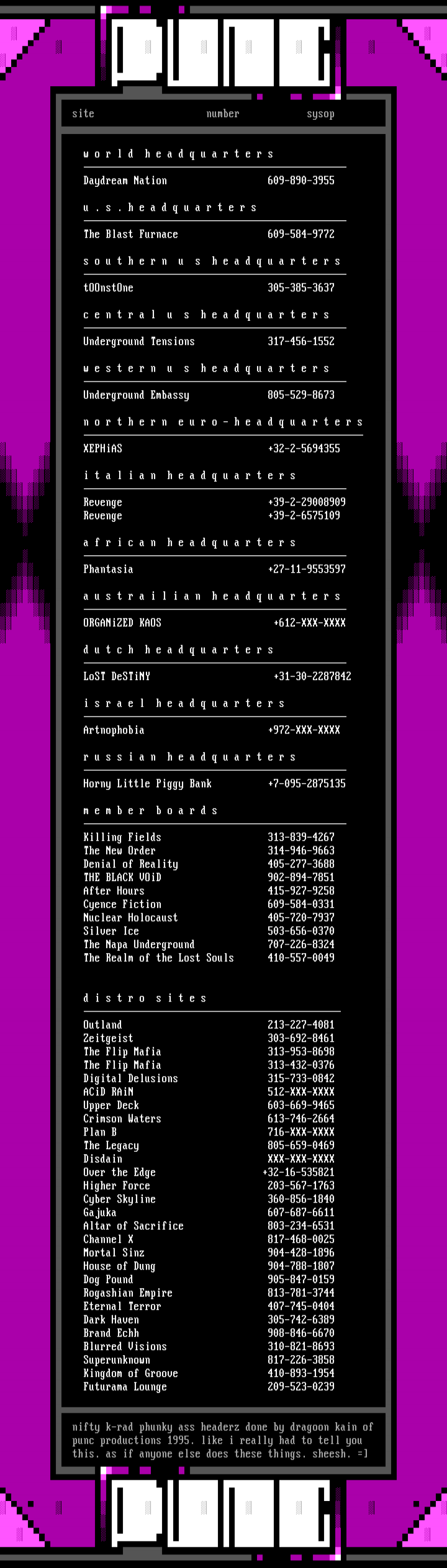 - punc october 1995 site list