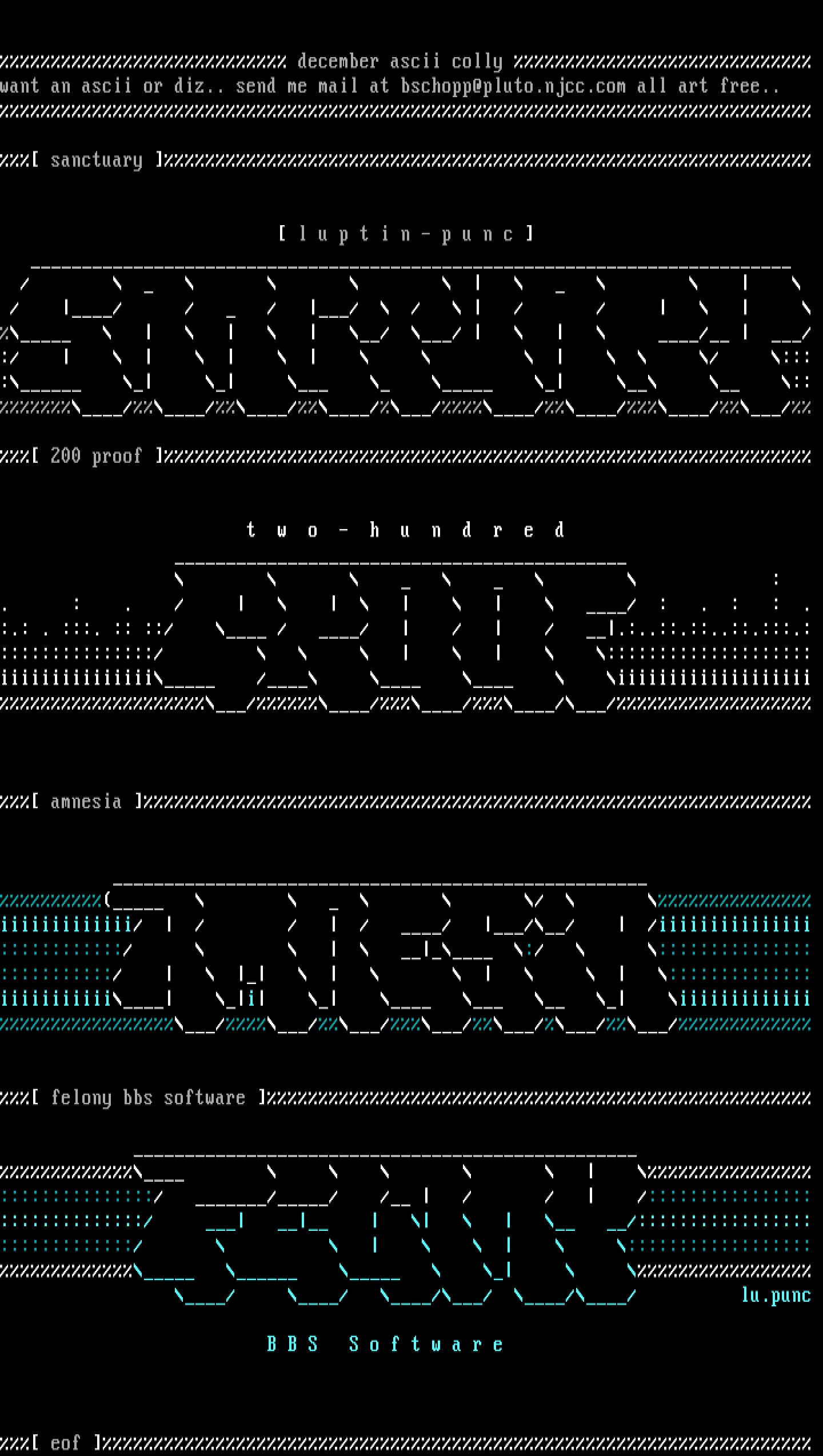 want an ascii or diz.. send me mail at bschopp@pluto.njcc.com all art free..