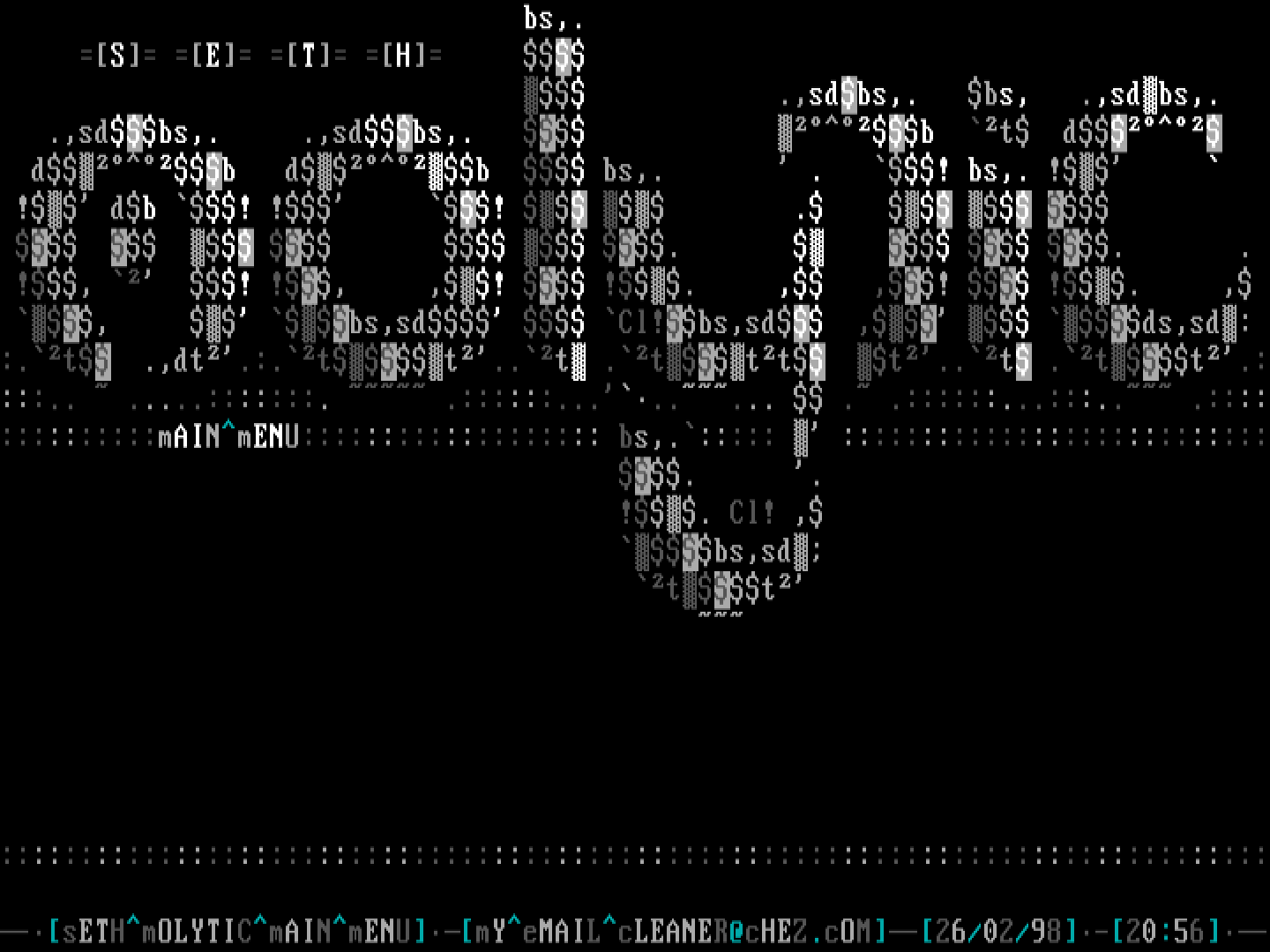 :.t .,dt.:.tt..t .ttt t..t .tt.::::.. .....:::::::. .::::::........ . .::::::...:::.. .::::::::::::::mAINmENU::::::::::::::::::: bs,.::::: ::::::::::::::::::::::::::: . .