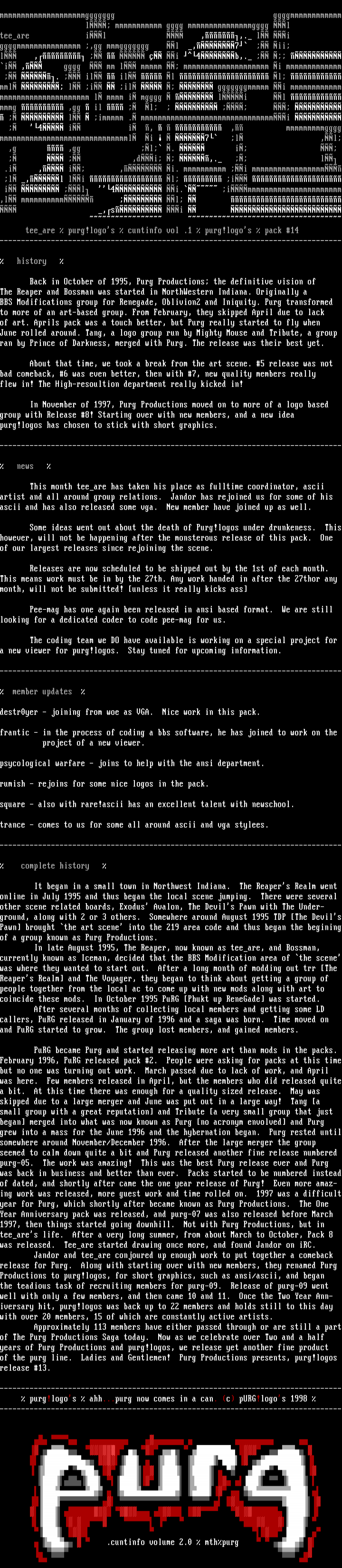 Productions to purg!logos, for short graphics, such as ansi/ascii, and began