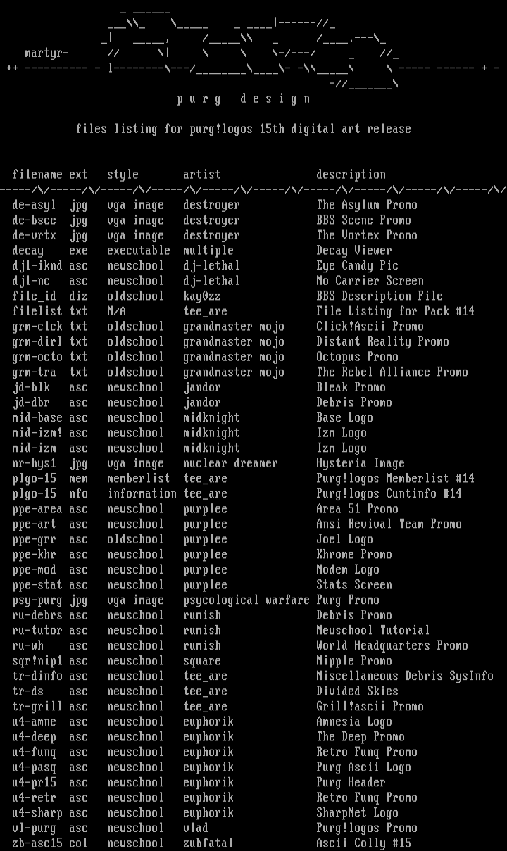 files listing for purg!logos 15th digital art release