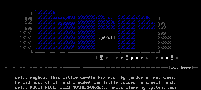well, ASCII NEVER DIES MOTHERFUNKER.. hadta clear my system. heh