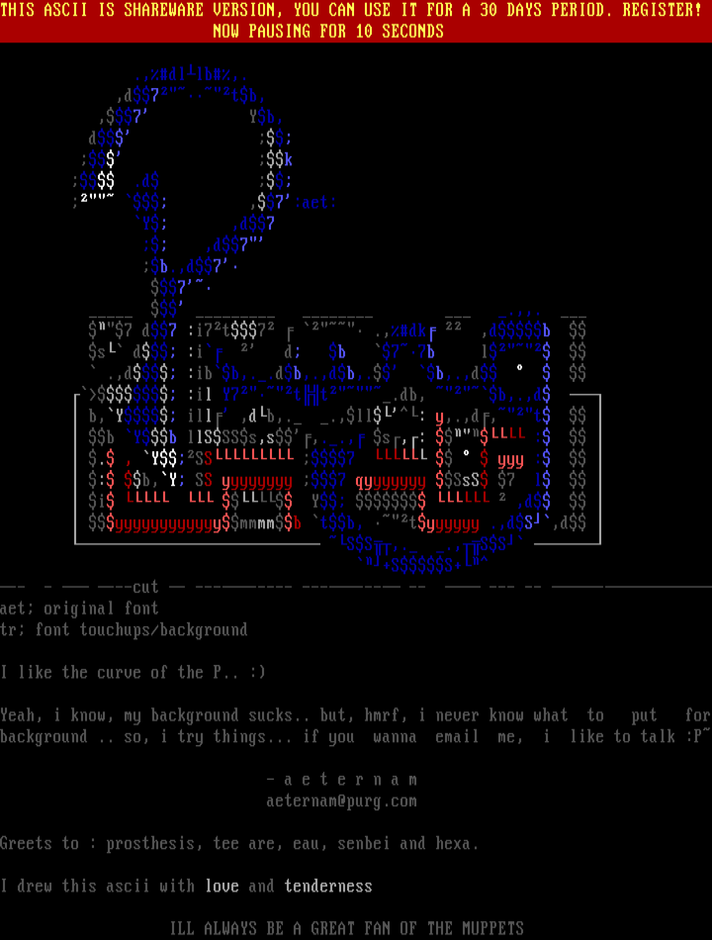 THIS ASCII IS SHAREWARE VERSION, YOU CAN USE IT FOR A 30 DAYS PERIOD. REGISTER!