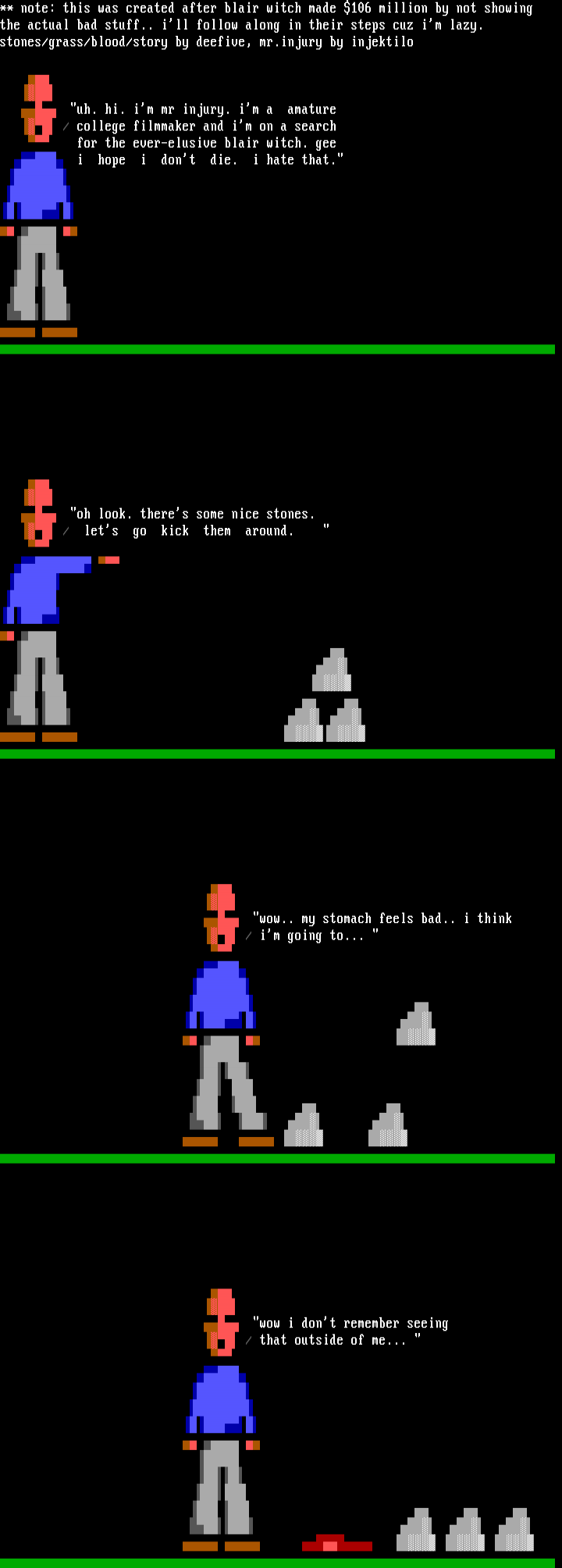 stones/grass/blood/story by deefive, mr.injury by injektilo