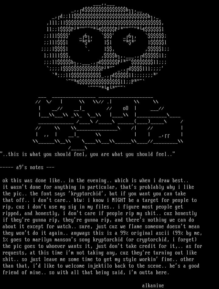 they wont do it again.. anyways this is a 99 original ascii 99 by me,