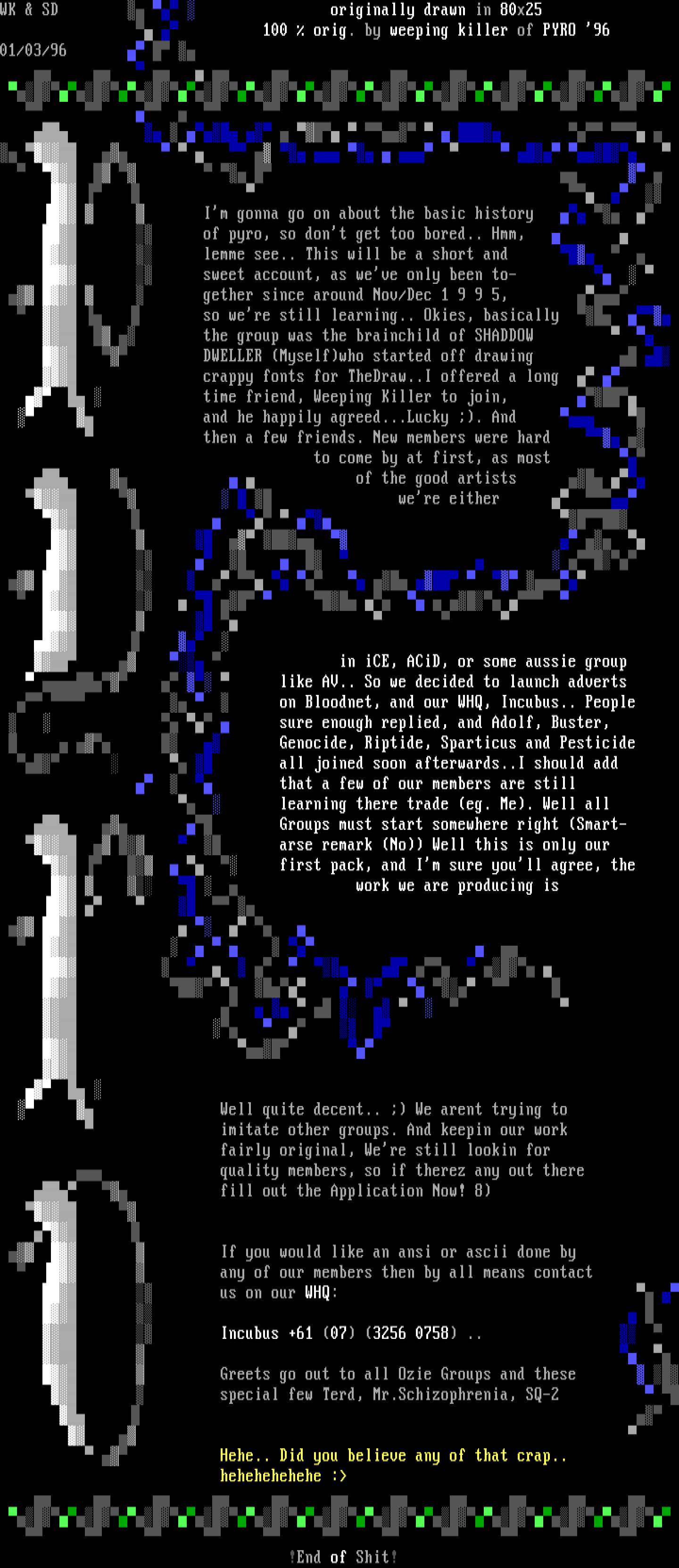 Greets go out to all Ozie Groups and these special few Terd, Mr.Schizophrenia, SQ-2