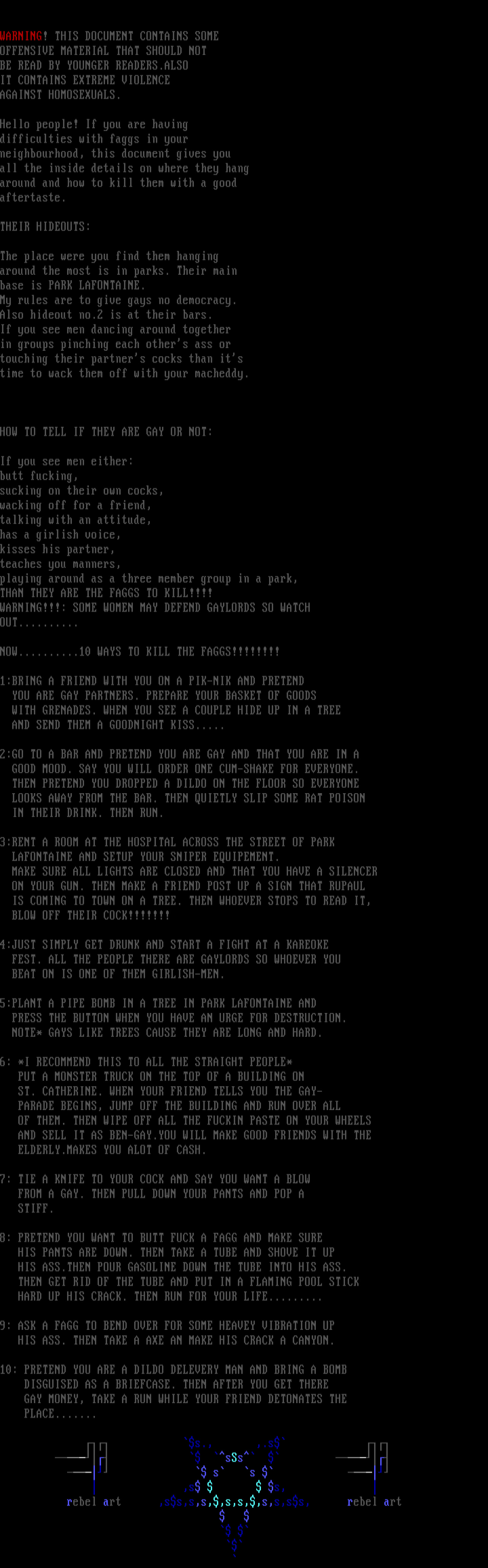 NOW..........10 WAYS TO KILL THE FAGGS!!!!!!!!