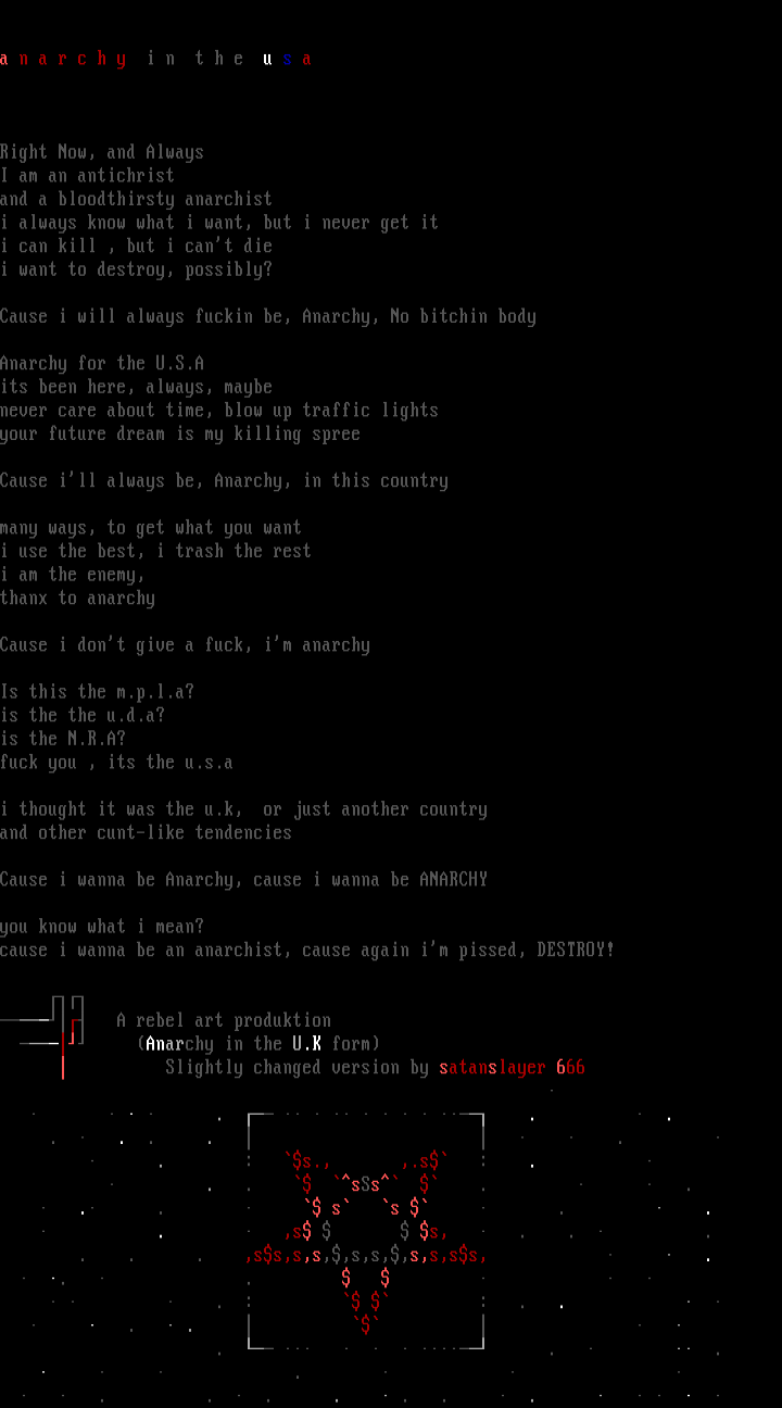 cause i wanna be an anarchist, cause again im pissed, DESTROY!