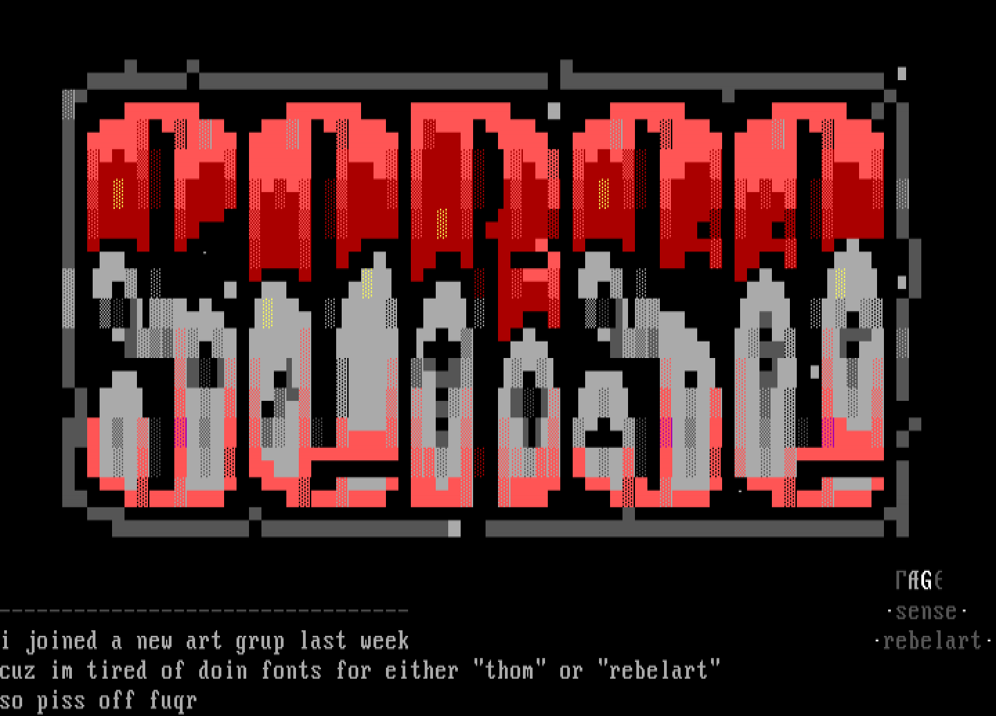 i joined a new art grup last week rebelartcuz im tired of doin fonts for either thom or rebelart