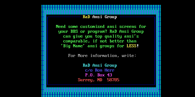 your BBS or program? RaD Ansi Group
