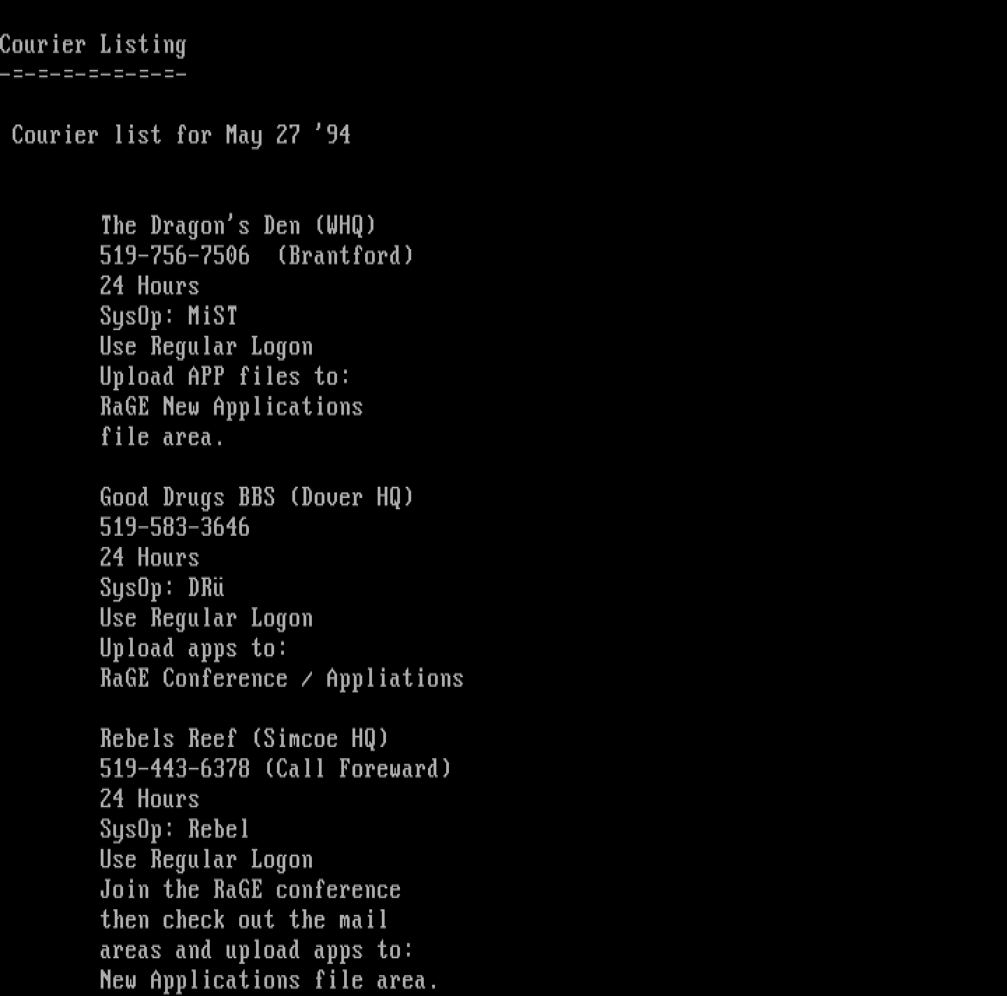 Courier list for May 27 94