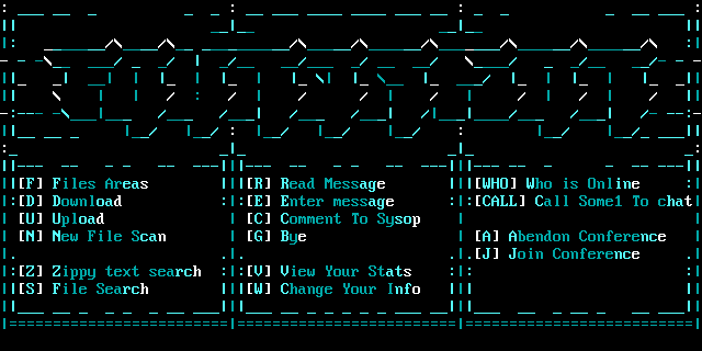 : : : : : // :- - - / / / / / / / / /- - - / / : / / / / / / / -:--- - / / / / // / /- --:- / / : / / / : / / : :--- -- - - -- ------ -- - - -- ------ -- - - -- ---F Files Areas R Read Message WHO Who is Online ::D Download ::E Enter message ::CALL Call Some1 To chat U Upload C Comment To Sysop N New File Scan G Bye A Abendon Conference . .. ..J Join Conference .:Z Zippy text search ::V View Your Stats :: :S File Search W Change Your Info