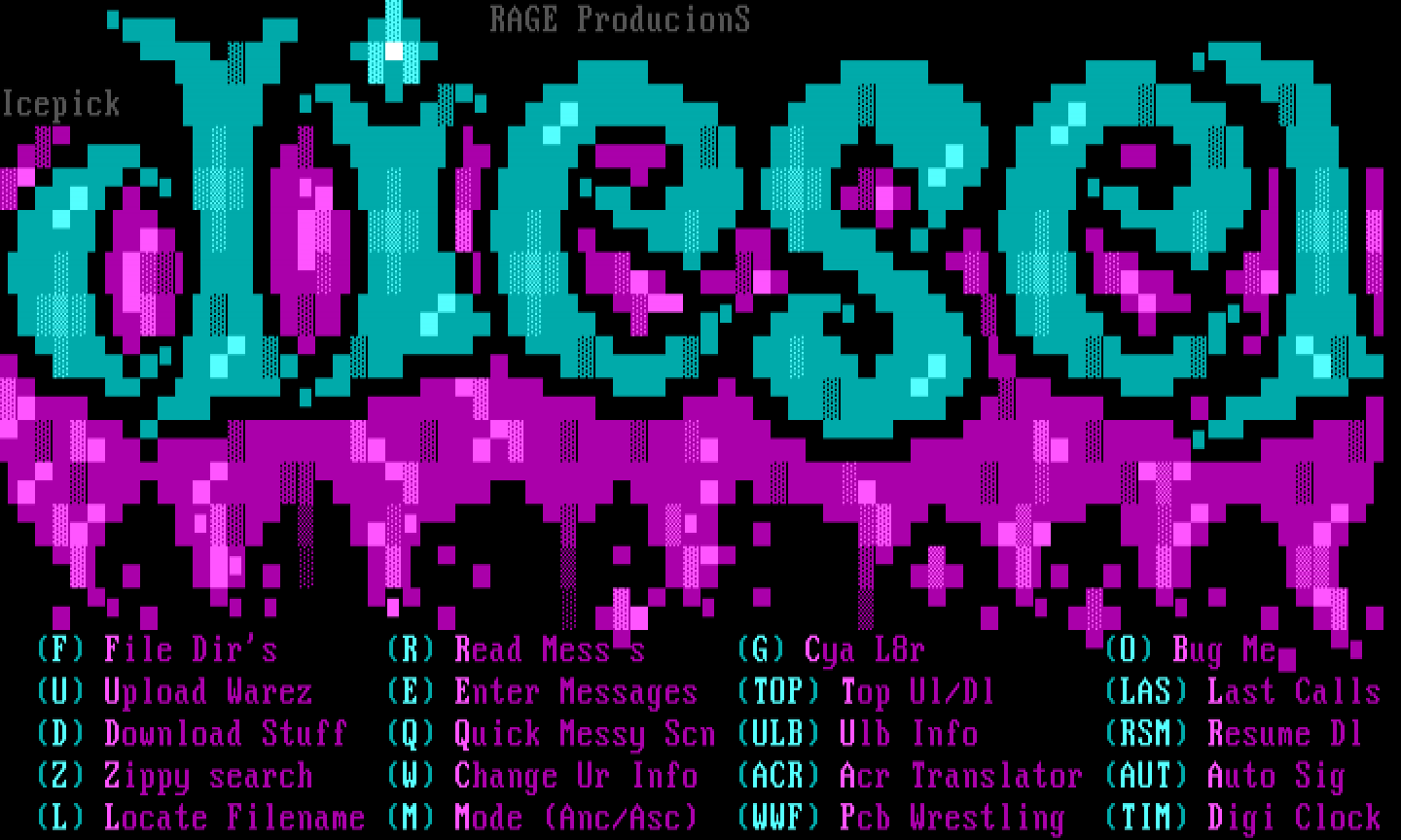 F File Dirs R Read Messs G Cya L8r O Bug Me